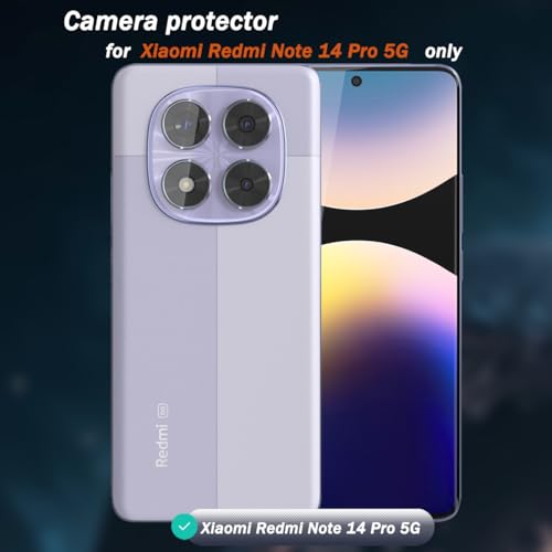 - Design for Xiaomi Redmi Note 14 Pro 5G camera lens protectors, not compatible with any other models. Fit almost Xiaomi Redmi Note 14 Pro 5G case. Please confirm your phone model before purchasing