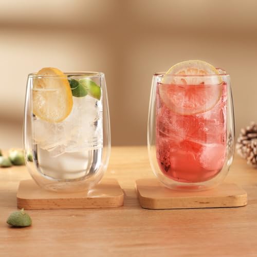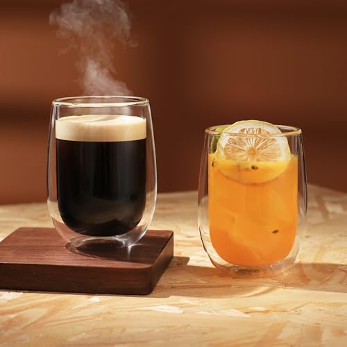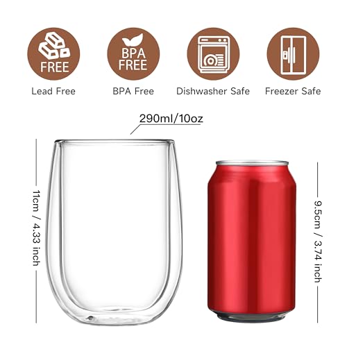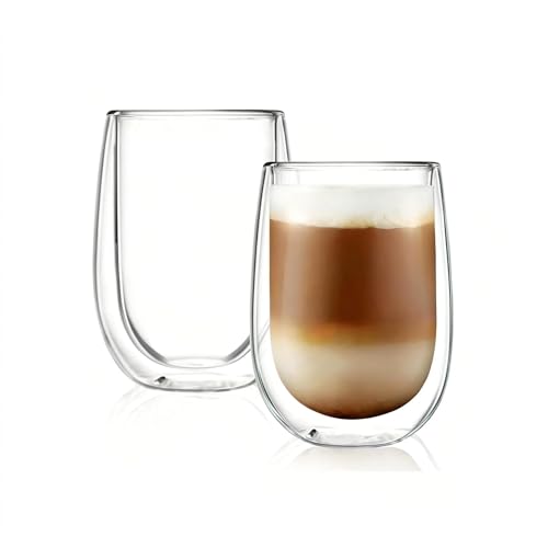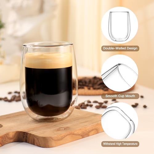 CNGLASS - CNGLASS Insulated Double Wall Thermal Glass Cups, 290ml Clear Coffee Glasses Set of 2