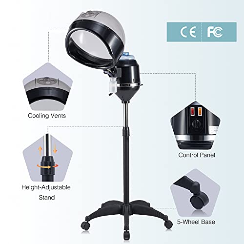 CO-Z - جهاز بخار احترافي للشعر مع 5 عجلات | معالج الوان دوار والة ترطيب بالبخار لمعالجة الشعر | بغطاء للرأس بارتفاع قابل للتعديل لصالونات التجميل المنزلية والحلاقة والمنتجعات الصحية والمزيد من كو-زد، شفاف