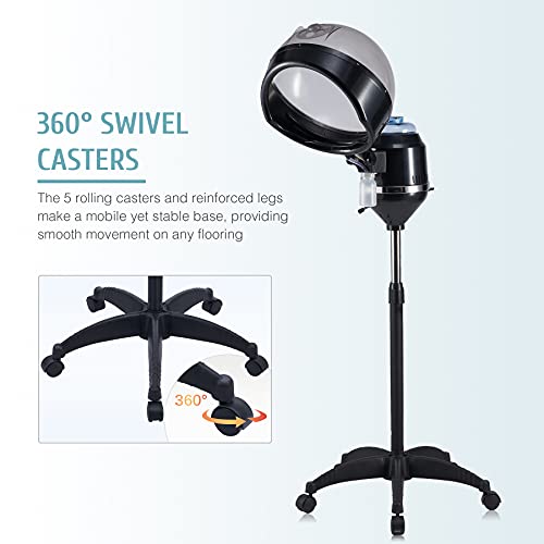 - عجلات 360 درجة: الأرجل المعززة و5 عجلات دوارة تشكل قاعدة متحركة ومستقرة، مما يسمح لك بتحريك آلة معالجة الشعر هذه حول منزلك أو صالون التجميل بسهولة وراحة.