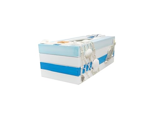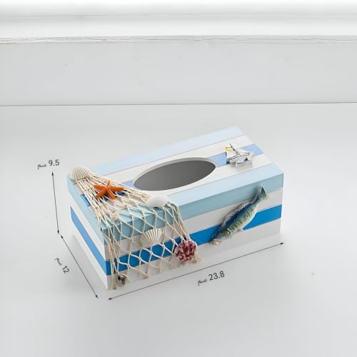 - Ornamented with sailboats, shells, and lighthouses, the piece captures refreshing seaside beauty, turning tissues into part of the décor story.