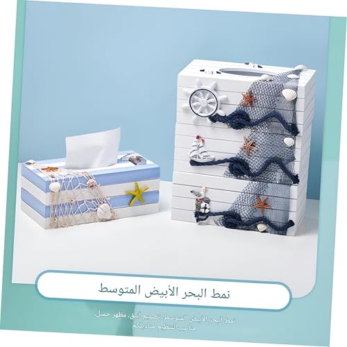 Generic - Coastal - Decorative tissue holder crafted from quality wood with charming nautical icons like anchor, starfish, and lighthouse for an ocean beach theme bathroom accessory piece (Option 6)