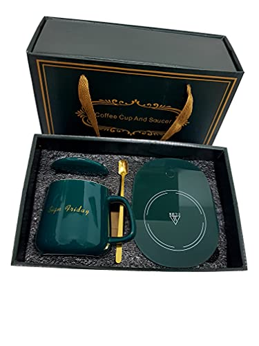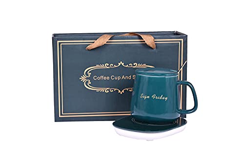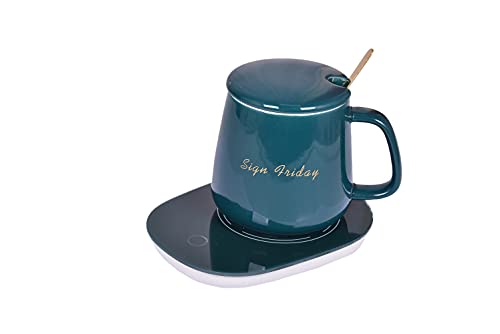 Sign Friday - Coaster Electric Coffee Cup,Gift set, Mug Warmer with Lid & Golden Spoon, Office Coffee, Tea, Milk Warmer set, (GREEN)