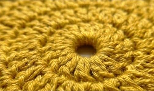 - تصميم كروشيه يدوي: كوستر مصنوع يدوياً بتقنية الكروشيه بلون أصفر خردلي جذاب مع حواف مزخرفة على شكل زهرة