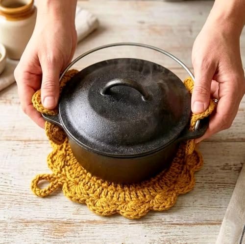 - مادة قطنية ناعمة: مصنوع من خيوط كروشيه عالية الجودة توفر حماية فعالة ضد الحرارة
