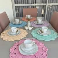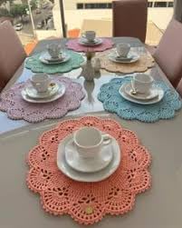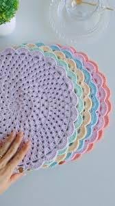 Generic - Coaster set, 6 pieces, hand crocheted, multi-colored, size 30 cm