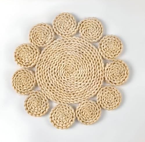 Generic - قواعد اكواب - قاعدة مشروبات مصنوعة يدويا من الخوص الطبيعي مصممة على شكل زهرة رقيقة، معزولة لحماية الاسطح، مثالية لتقديم الطعام الانيق والتصوير الفوتوغرافي للطعام