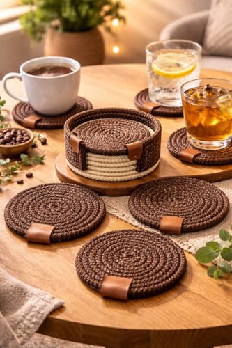 Generic - Coasters Set of4, Absorbent Coasters for Drinks, Minimalist Cotton Woven Coaster for Living Room Decor, Fall Home Decor, 4.3 Inches