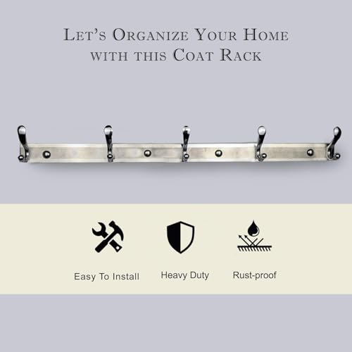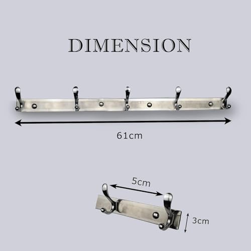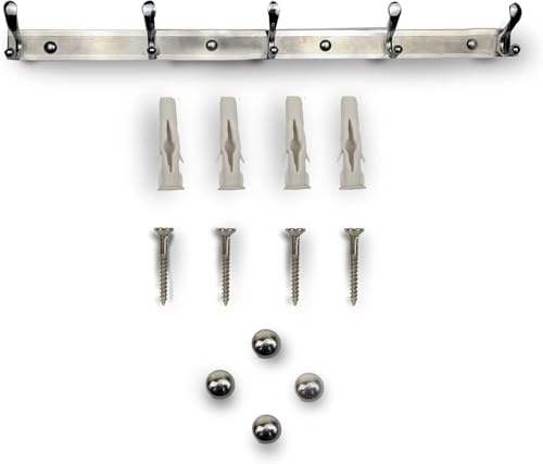 Generic - Coat Rack Wall Mounted, Coat Rack with 5 Hooks, Rustproof Finish, 4 Mounting Positions Included, Length 61cm, Stainless Steel