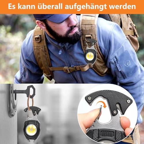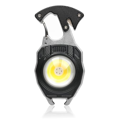 MAKDAK - COB Keychain Work Light 1200 Lumen - Keychain Flashlight Emergency Light with 7 Light Mode Work Light,Build in Lighter,Magnet Base and Folding Bracket Bottle Opener, for Camping Fishing Repair Walking