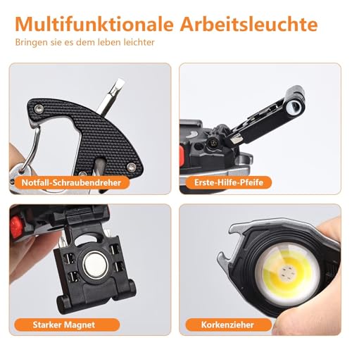 - Durable and Portable Design: Made with high-strength lightweight aluminum alloy, this flashlight is water and impact resistant. It also features a magnet base and 180-degree foldable bracket, allowing you to position the light at different angles or hang it for convenient use.
