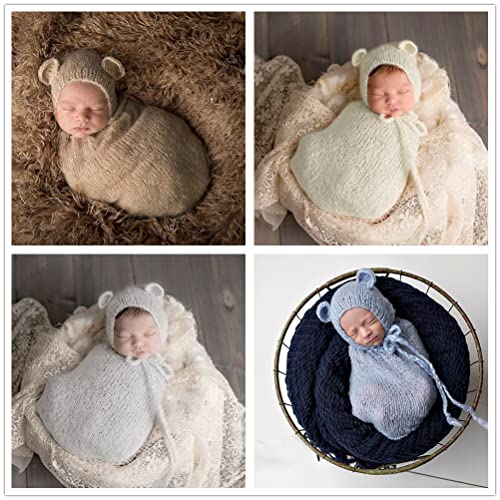 Coberllus - Coberllus Newborn Baby Photography Props Mohair Outfits Crochet Bonnet & Sleeping Bag Set for Boy Girls Photo Shoot Posing, White, M