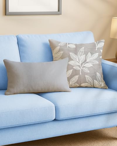 Coccaro Home - طقم مخدة زينة بلون سادة ونقشة أوراق نباتية من كوكارو هوم، قطعتين، لون بيج/رمادي، موديل CBB-PS-2-45