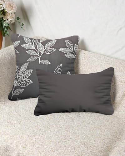 Coccaro Home - CCL-P-2-45 Leaf Print Solid Decorative Cushion 2-Pieces Set, 45 cm Length x 45 cm Width, Dark Grey/White
