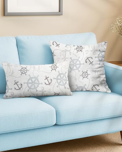 Coccaro Home - CNA-P-2-4550 Nautical Anchor Helm Print Cushion with Coastal Decorative Throw Pillows 6-Piece Set, Multicolor