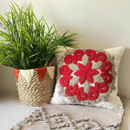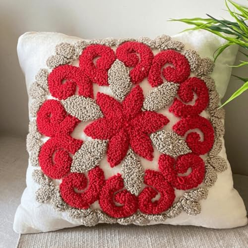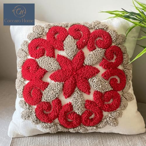 Coccaro Home - مخدة بتصميم زهري هندسي مع الحشوة من كوكارو، لون أحمر ورمادي، مقاس 40 سم × 40 سم