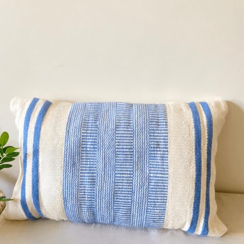 Coccaro Home - مخدة منسوجة وفق طريقة كليم بنمط هندسي من كوكارو هوم، مقاس 55×35 سم، أزرق/أبيض