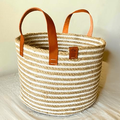 Coccaro Home - Jute Line Basket with Leather Handles, Off-White