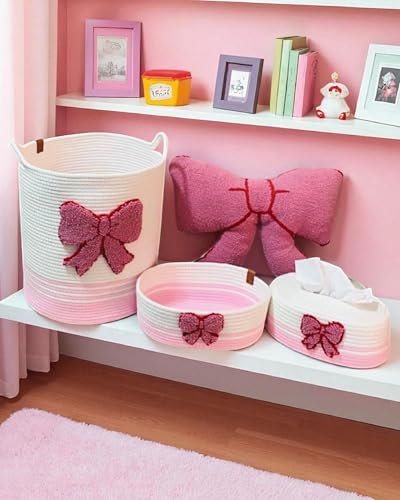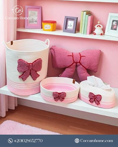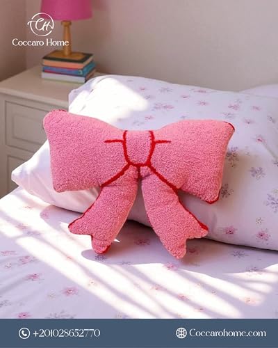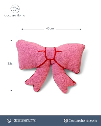 Coccaro Home - Pink Ribbon Plush Bow-Shaped Decorative Pillow for Kids – Ultra-Soft, Pink Sherpa Fleece Cushion with Red Trim – Ideal for Bedrooms, Nurseries & Playrooms K-PP-PR1