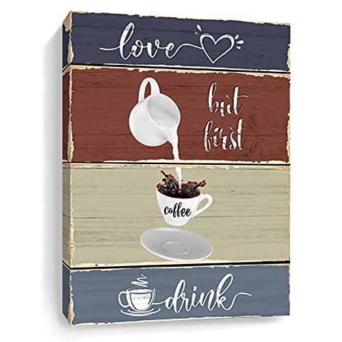 Drawpro - Coffee Bar Wall Decor 12x16 IN For Kitchen Farmhouse Wall Art Love But First Coffee Sign Canvas Home Decor Modern Home Dining Room Decorative Artwork Great Framed Picture Cute Poster Prints Room Decor