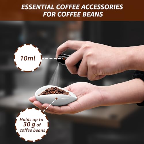 - 【Coffee Bean Dosing Cup and Spray Bottle Set】 This package contains 1×Coffee Bean Dosing Cup, 1×Spray Bottle. It is a must have coffee accessory for measuring coffee beans. The coffee bean dosing cup is made of premium ceramic and has a capacity of holding up to 30 grams of coffee beans. The spray bottle is made of high-quality ABS and has a capacity of 10ml that is optimal for humidity control.