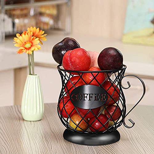WindFire - Coffee Capsule Storage Basket, Iron Art Hollowed Classic Cup Shape Large Capacity Coffee Pod Organizer Holder, Cup Keeper Coffee & Espresso Pod Holder, Kitchen Counter Black Metal Wire Storage Holder