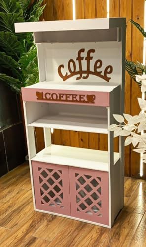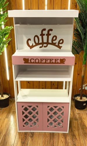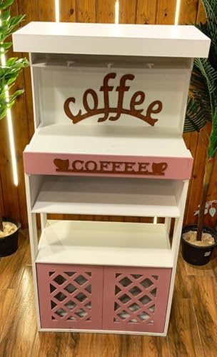 Generic - Coffee Corner Cabinet, Multi-Use White and Pink, with Storage Shelves and Bottom Storage Unit