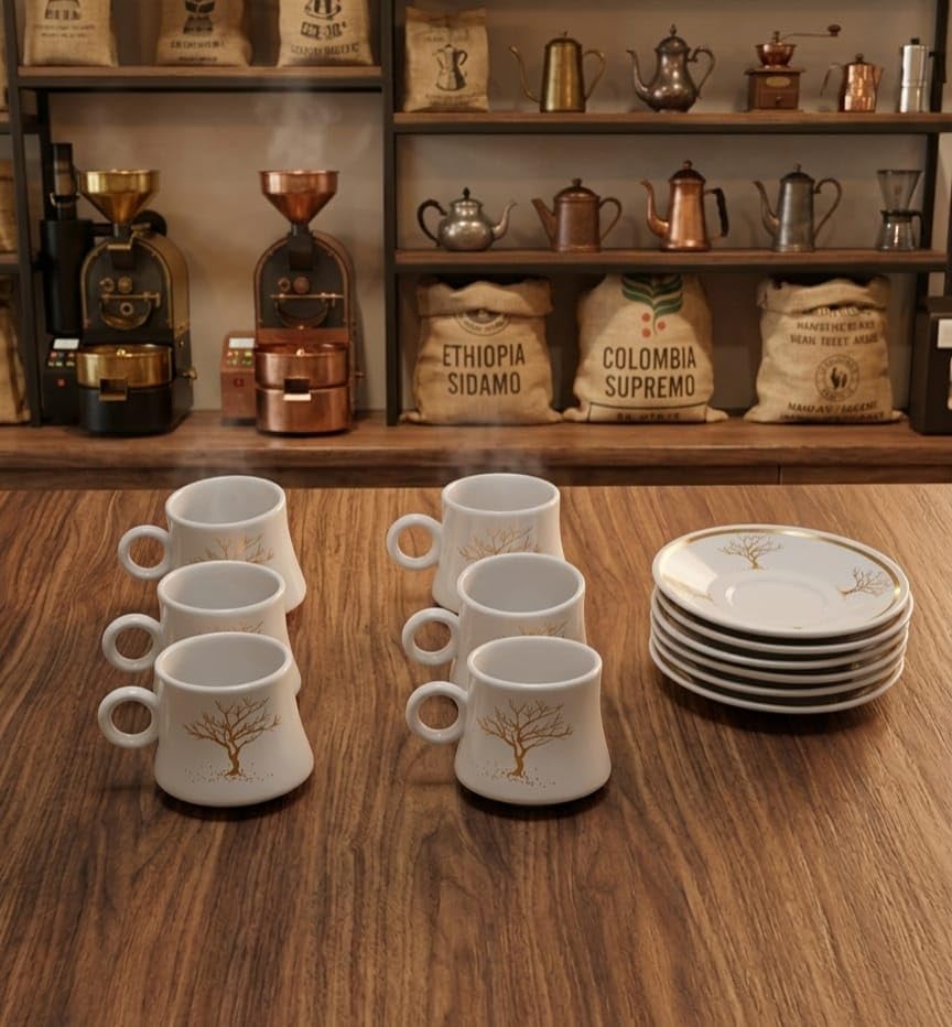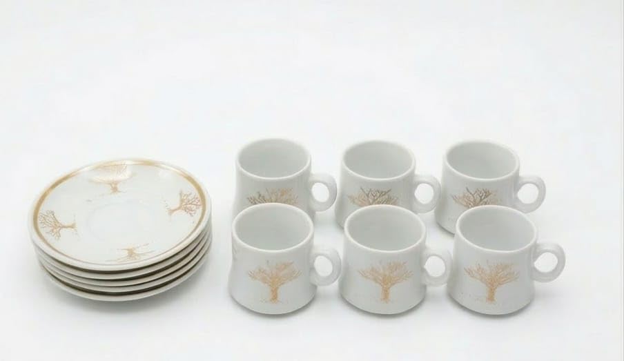 - محتويات الطقم: يتضمن 6 فناجين قهوة و6 صحون متطابقة لتقديم القهوة بأناقة للضيوف والعائلة