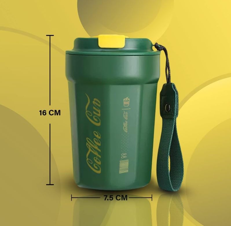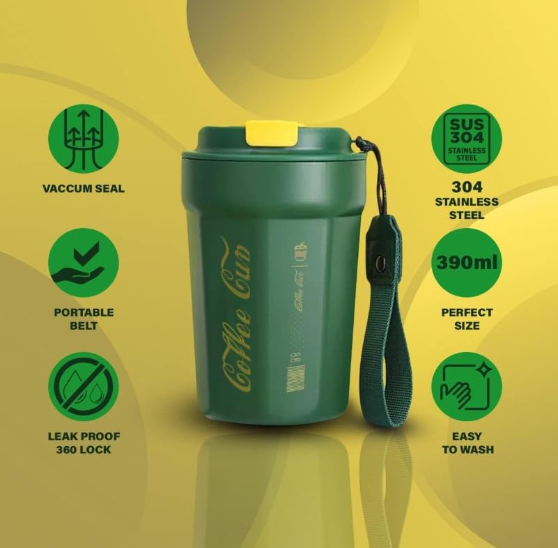 Generic - Coffee Cup with Lid Leak proof, Thermal coffee mug 380 ml, Double Wall Stainless Steel Insulated Travel Mug for Hot or Cold Drinks (Green)