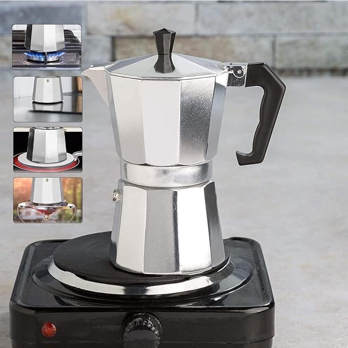 - [Moka Espresso Coffee] Stovetop espresso maker, Moka pot, & manual coffee percolator machine. Stove top percolator coffee pot to make home espresso like a barista. It’s easier to use than electric espresso coffee machines and makes a rich cup of Italian style moka coffee. 3 cup espresso coffee maker stovetop size in Food grade anodized aluminum Espresso Moka Coffee maker.