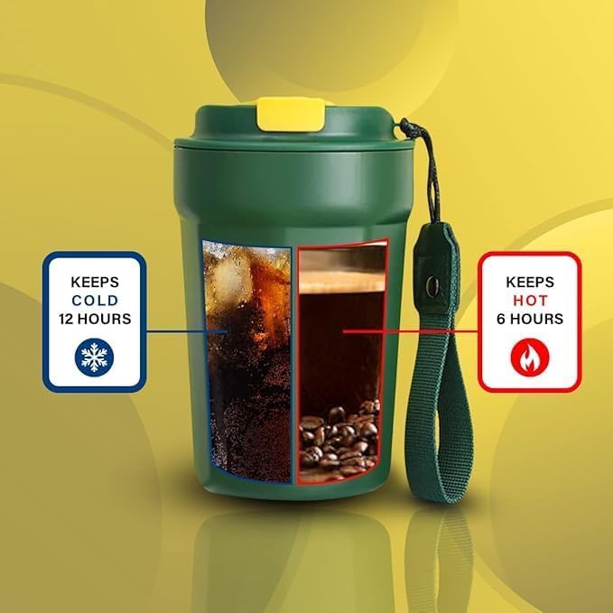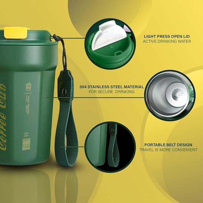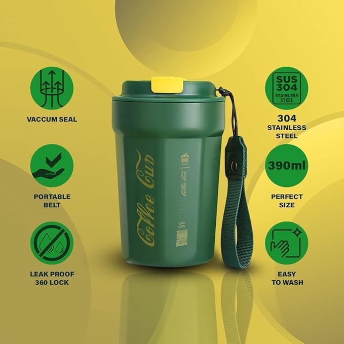 Generic - مج قهوة حراري من الستانلس ستيل للسفر بسعة 380 مل بجدار مزدوج معزول وقابل لاعادة الاستخدام يحافظ على المشروبات الساخنة والباردة في الهواء الطلق والرياضة والسيارة والمكتب (اخضر)