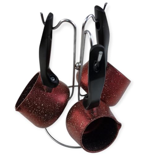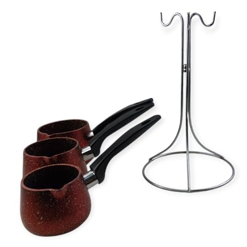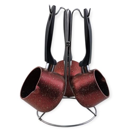 Generic - Coffee Pots - 3 Pcs. With Stainless Holder - Red Brown