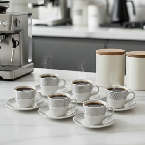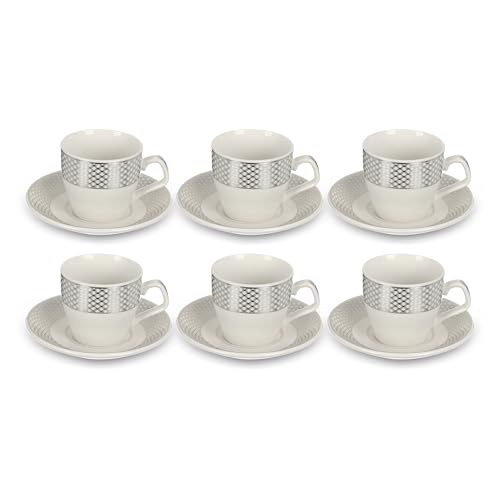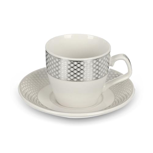 Generic - طقم قهوة، 12 قطعة لـ 6 اشخاص، بتصميم فضي، بورسلين - ابيض وفضي