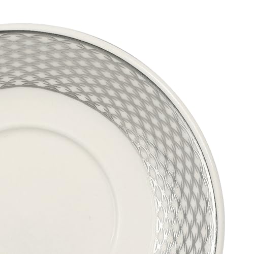 - العرض: يتميز كل كوب وصحن بحواف فضية مطابقة تخلق إعداد طاولة متماسكة وأنيقة