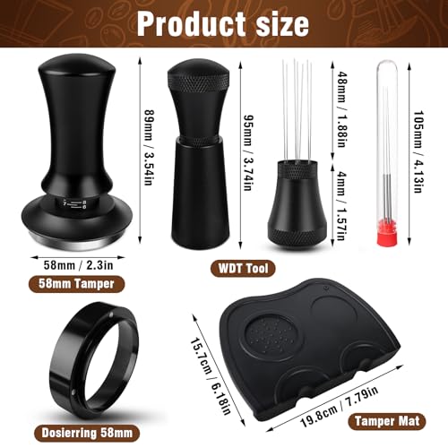 Rinwywey - مجموعة مكبس قهوة 58 ملم، مجموعة مكبس إسبريسو مطورة بما في ذلك أداة دبليو دي تي، حلقة جرعات 58 ملم، قاعدة مكبس لتنظيم الضغط مصنوعة من الفولاذ المقاوم للصدأ مع ضغط تلامس 13.60 كجم