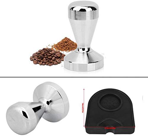 Generic - Coffee Tamper Kit, 51mm Stainless Steel Coffee Tamper Flat Base Espresso Beans Press Tool and Anti-Slip Silicone Coffee Pad Mat Holder Set