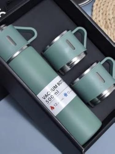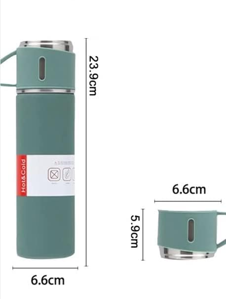 Spaceshoop - ترموس حراري للقهوة، من فولاذ مقاوم للصدأ، زجاجة مياه معزولة بتفريغ الهواء، 500 مل، مج للسفر مع 3 أكواب للمشروبات الساخنة والباردة، اخضر فاتح