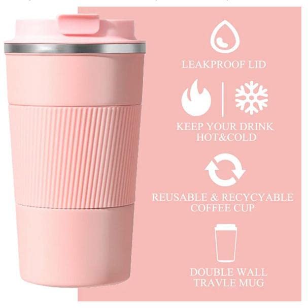 Generic - Coffee Travel Mug, 17 oz Insulated Tumbler Leakproof Lid Thermal Vaccum Coffee Mug Stainless Steel Double Wall Reusable Coffee Cup For Hot Cold Coffee Tea Drinks In Travel Car Camping (Pink Silicone)