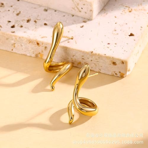 Generic - Coiled Serpent Earrings - Masterfully designed studs with a high-polish gold finish and secure post back, symbolizing wisdom and renewal.