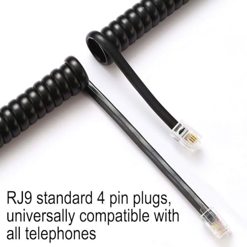 Generic - Coiled Telephone Headset Cord for Use with Landline Phones, VoIP Phones - Rj22 (Black)