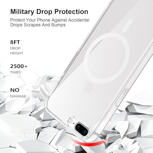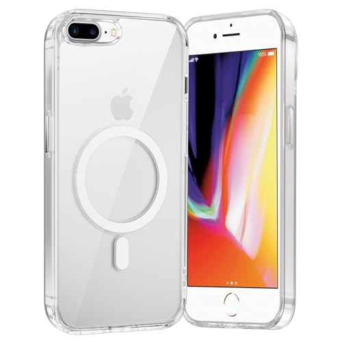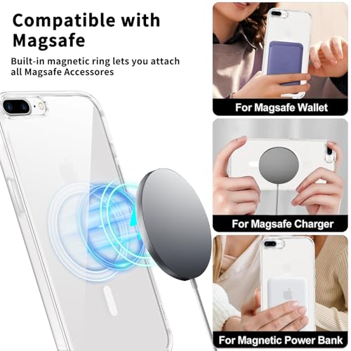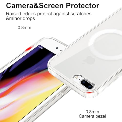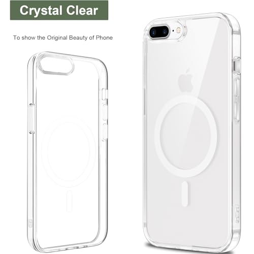 Coiwxmoi - جراب حماية مغناطيسي متوافق مع الشحن اللاسلكي ماج سيف بظهر من البولي كربونات + ممتص للصدمات من السيليكون والبولي يوريثين الحراري مضاد للصدمات لموبايل آيفون 7 بلس/8 بلس 5.5 بوصة من كويوكسموي، شفاف