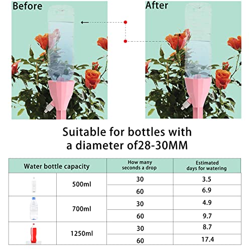 - 【صمام مطور قابل للتعديل】تتميز رؤوس الري القابلة للتعديل من كوكاكوت بصمام إطلاق بطيء مطوّر يتيح التحكم في سرعة التنقيط من 0 إلى 90 ثانية لكل قطرة. يمكن لـ550 مل من الماء أن تروي نبتتك لمدة تقارب 3 إلى 5 أيام؛ و700 مل تكفي لحوالي 5 إلى 10 أيام؛ أما 1250 مل، فتكفي لمدة تتراوح بين 9 إلى 18 يومًا. بشكل عام، يُنصح بأن تكون سرعة التنقيط حوالي قطرة واحدة كل 30 ثانية. هذا المنقط المائي للنباتات موفر للطاقة أكثر بدلاً من الري المباشر.