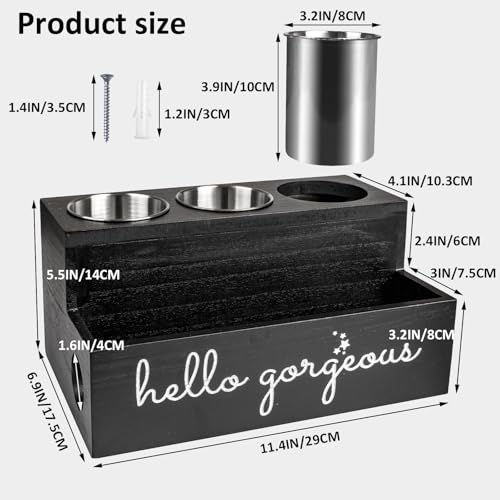 - Multi-Purpose Holders: 3 stainless steel cups (8cm diameter x 10cm depth) securely hold multi-size hair dryers, while accommodating brushes/combs.