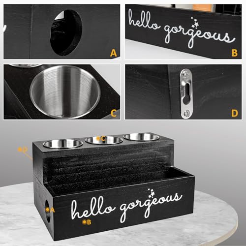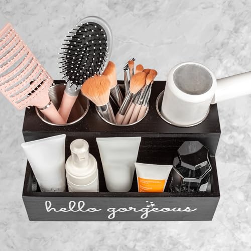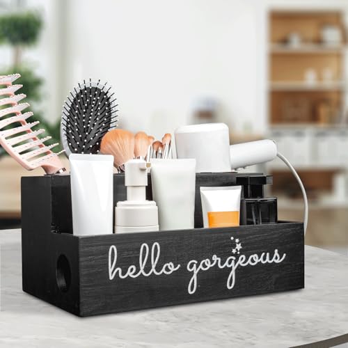- Space-Saving Dimensions: 29(L)x17.5(W)x14(H)cm matte black organizer seamlessly blends with bathroom/vanity decor, "hello gorgeous" script adding subtle flair.