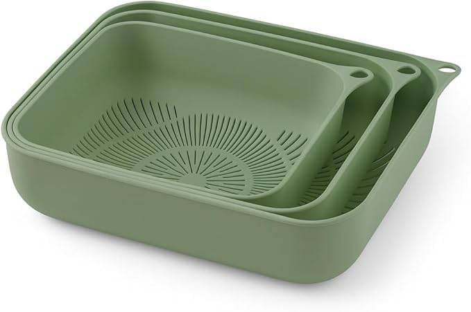 - تصميم متداخل موفر للمساحة تتلاءم السلال الثلاث بشكل أنيق داخل بعضها البعض لتوفير سهولة التخزين، مما يحافظ على مطبخك منظمًا.
