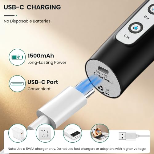 Colarlemo - Milk Frother Handheld Rechargeable, Frother Wand Drink Mixer Electric Whisk for Coffee, Detachable With 3 Stainless Whisks, Hand Mixer for Lattes, Cappuccino, Matcha, Egg, No Stand,Black