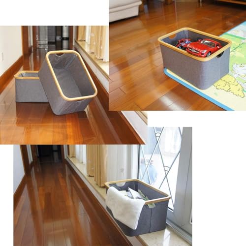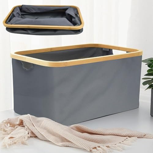 Spaceshoop - collapsible bamboo-frame storage basket with handle, inner surface waterproof lining,unique design for storage and sorting of clothes, toys or office files (1pc, large 45 * 22)