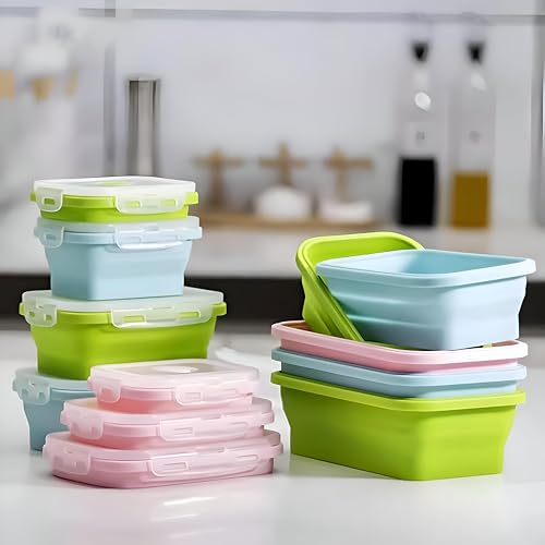 - تصميم قابل للطي يسمح بطي الأوعية إلى ثلث حجمها، مما يزيد من كفاءة التخزين في خزائن المطبخ والأدراج.
