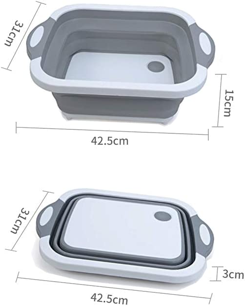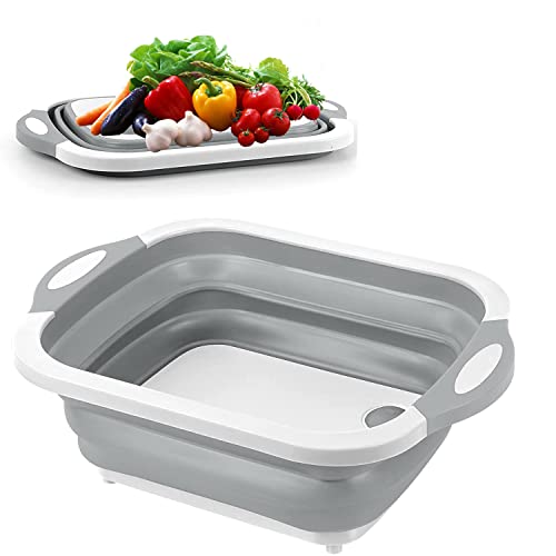 VIGOR PATH - Collapsible Cutting Board - Portable Multi-Purpose Dish Tub - Washing and Draining Fruits and Veggies with Food-Grade Sink Storage - Multifunctional Basket for BBQ, Picnic,Camping and Sink (Grey)