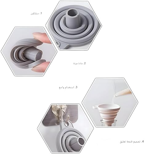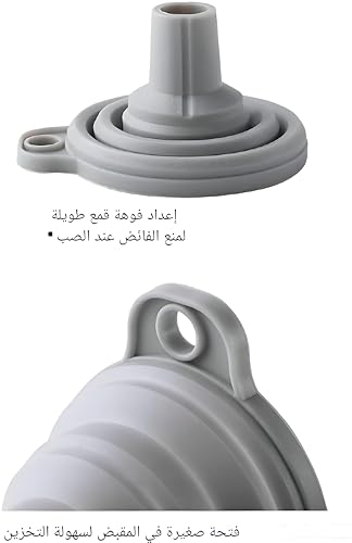 - يسمح لك التصميم المبتكر القابل للطي بتمديد القمع عند الاستخدام وطيّه إلى جزء بسيط من حجمه الأصلي، مما يوفر مساحة قيمة في مطبخك مقارنة بالأقماع التقليدية الصلبة.